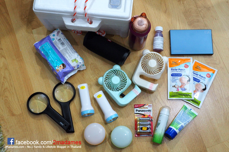 พัดลมไฟฟ้าใส่ถ่าน ถึงเวลากลางคืนอากาศจะเย็น แต่ช่วงกลางวันเนี่ย ร้อนพอสมควรนะ ยิ่งต้องออกแรงกางเต็นท์ด้วยแล้ว มีเหงื่อซึมเลยนะ มีอุปกรณ์ให้ความเย็นไป จะได้ช่วยคลายร้อนได้