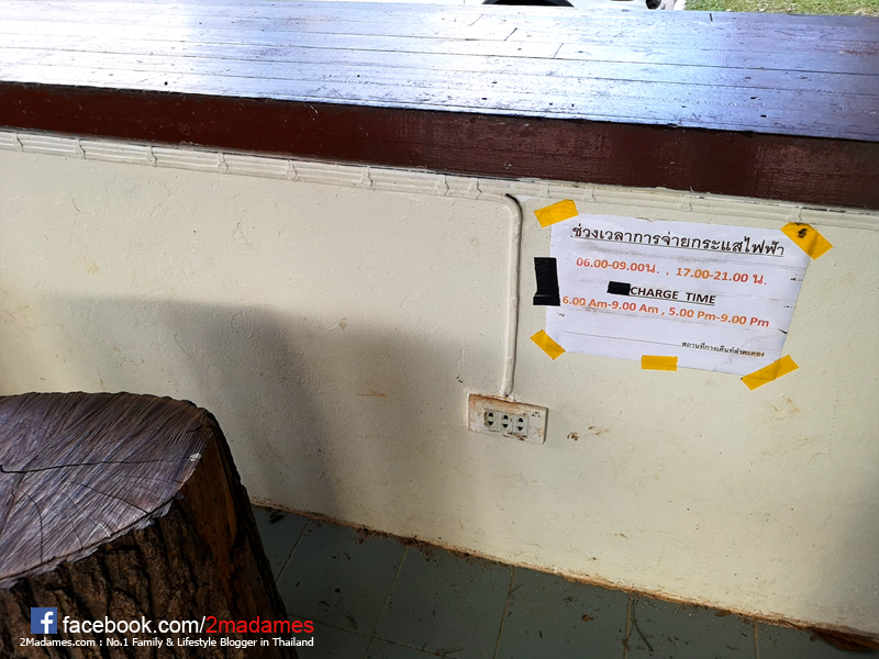 ใกล้ๆที่ทำการของเจ้าหน้าที่ จะมีศาลาให้ใช้ไฟฟ้าชาร์ตแบตฟรี แต่จะมีกำหนดเวลาตามภาพเลย
