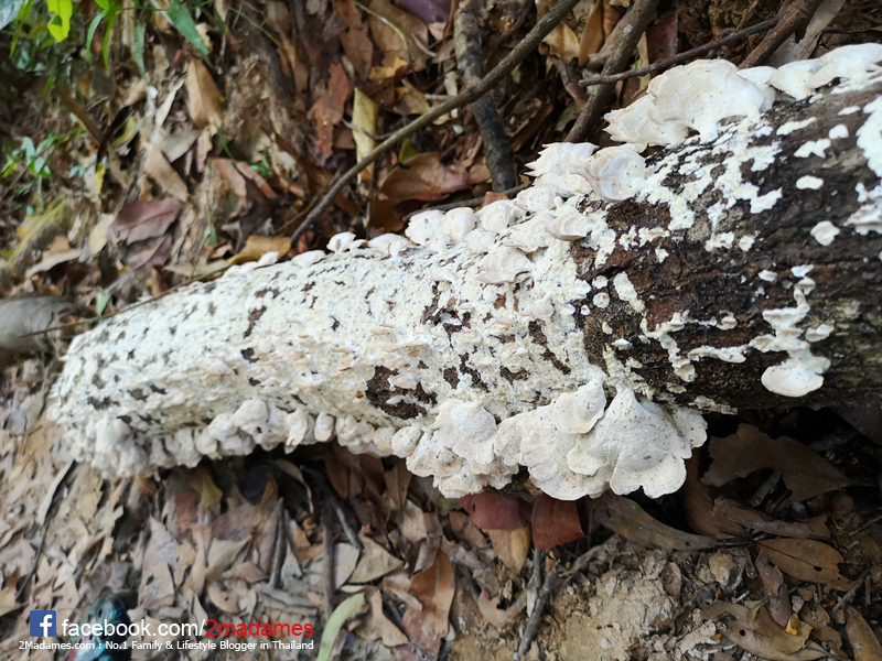 เจอท่อนไม้บางท่อน โอ้โห เห็ดขาวๆมาขึ้นเต็มเลย