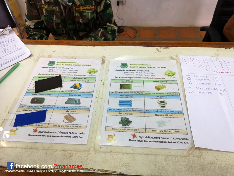 จองแล้วก็ไปจ่ายเงินที่ธนาคารกรุงไทยได้เลย พอมาถึงก็มายื่นให้เจ้าหน้าที่ได้เลยครับ มีอุปกรณ์เสริมต่างๆ เช่น เสื่อ, ผ้าใบ, ที่รองนอน, เตาถ่าน ราคาก็ไม่แพง ตามภาพเลยครับ