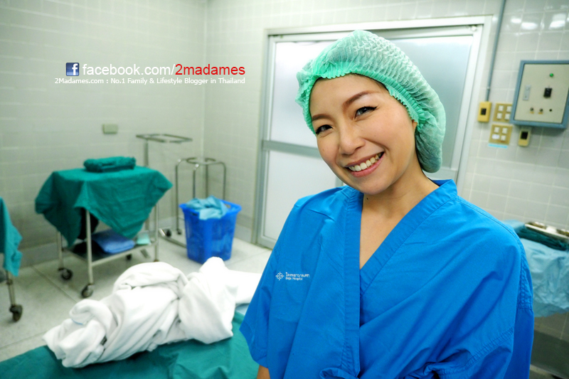 2.) เมื่อเราพร้อมขึ้นเขียงแล้ว พยาบาลก็จะมัดแขน เหมือนเราเข้าห้องผ่าตัดปกติ ต้องบอกว่าเฉยมากเลยค่ะ เพราะแอนเข้าห้องผ่าตัดคลอดมาสองครั้งแล้ว จำได้ว่าครั้งแรกตื่นเต้นมาก สั่นกลัวไปหมด พอคลอดครั้งที่สองก็อารมณ์เดียวกับครั้งนี้เลยคะ สบายๆ ไม่น่ากลัวใดๆ จากนั้นพยาบาลก็จะทำความสะอาดบริเวณต้นขาทั้งหมด เพื่อฆ่าเชื้อ