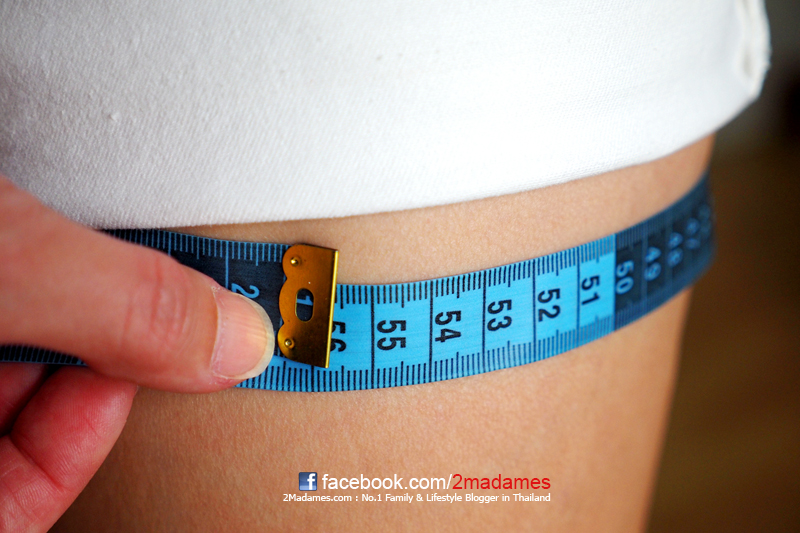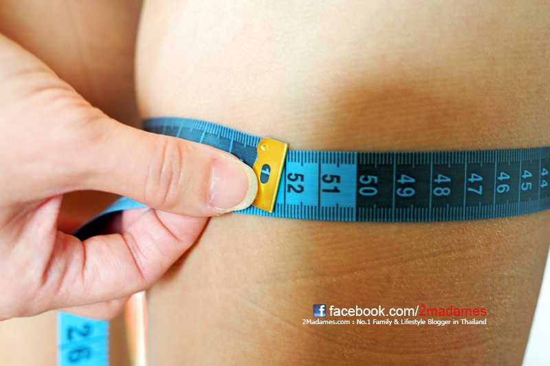 บริเวณต้นขาส่วนที่ใหญ่ที่สุด วัดได้ 52 เซนติเมตร ลดไปทั้งหมด 3.5 เซนติเมตร (55.5-52)