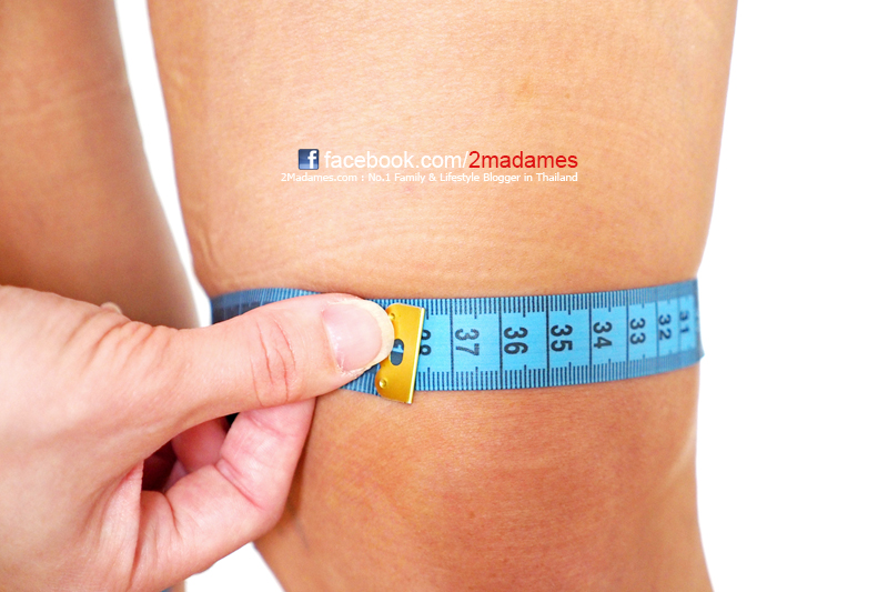 บริเวณรอบเหนือหัวเข่า วัดได้ 37.5 เซนติเมตร ลดไปทั้งหมด 2.2 เซนติเมตร (39.7-37.5)