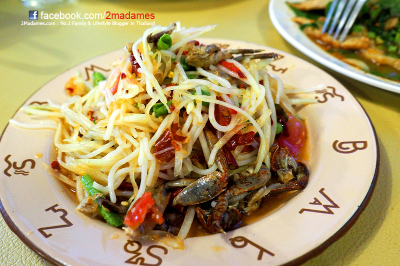 หิวแล้วเรามาเริ่มทานพร้อมๆกันดีกว่า เริ่มเมนูแรกด้วยตำซั่วปู จานนี้จริงๆเป็นออเดอร์ของคุณนายใหญ่ เห็นหน้าตาจีนจ๋าแบบนี้ แต่คุณเธอชอบทานปลาร้ามากๆ แถมยังถ่ายทอดความชอบสอนคุณนายเล็กทานแต่เด็กด้วย สำหรับรสชาติต้องบอกเลยว่ามาครบรสจริงๆ แถมจานใหญ่จริงๆ จานนี้ราคา 50 บาท ถือว่าเป็นราคาที่ถูกมากสำหรับส้มตำที่ขายในร้านแบบนี้