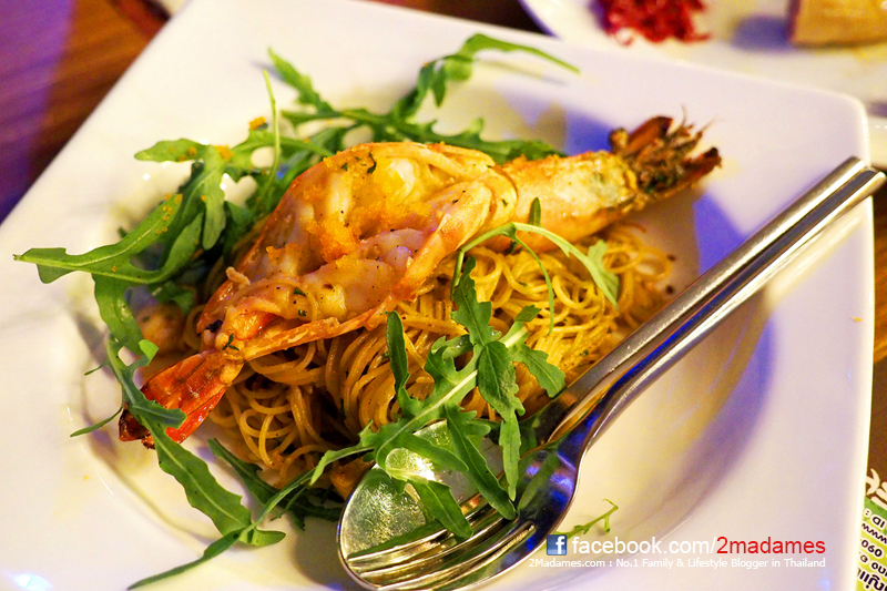Capellini with Tiger Prawn ราคา 320 บาท ดูจะเป็นจานที่คุ้มค่าคุ้มราคาที่สุดและทุกคนชื่นชอบ เป็นเส้น Angel Hair คลุกเคล้าซอสครีมเข้มข้น ที่ผัดมาได้เคลือบเส้นทั่วกันดี เสิร์ฟพร้มกุ้งลายเสือย่างสดๆตัวโต อร่อยสุดๆเลยครับจานนี้