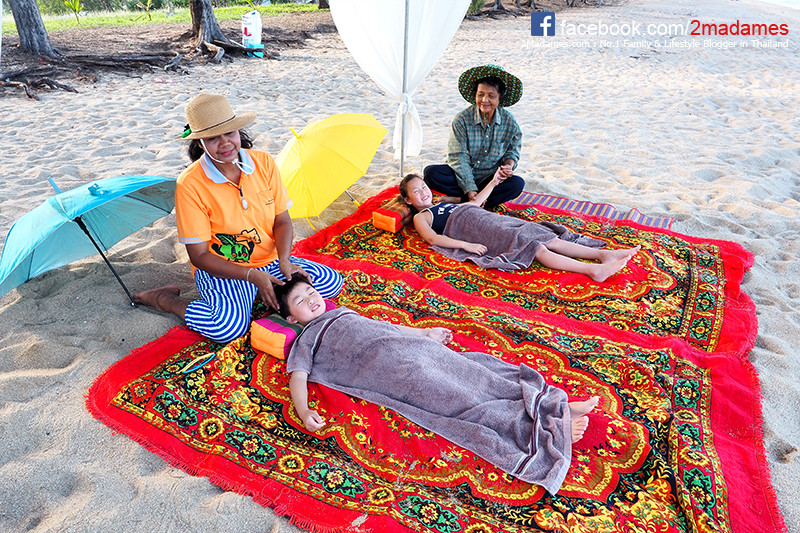 บ่ายแก่ๆ เราได้นัดทำสปาทรายที่ริมทะเลไว้