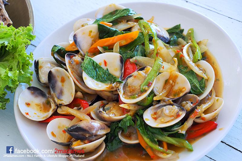 หอยตลับผัดโหระพา ตอนที่สั่งนึกว่าไม่ใส่พริกเหมือนร้านอื่นๆที่เคยทาน พอเสิร์ฟมาเห็นแล้วดูน่าทานมากเพราะมีทั้งสีเขียวสีแดง ที่สำคัญผัดมาได้หอมมาก หอยก็สดมาก