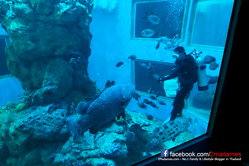 ช่วง 14:00 น. จะมีโชว์ให้อาหารปลาในบริเวณแทงก์ปลาใหญ่