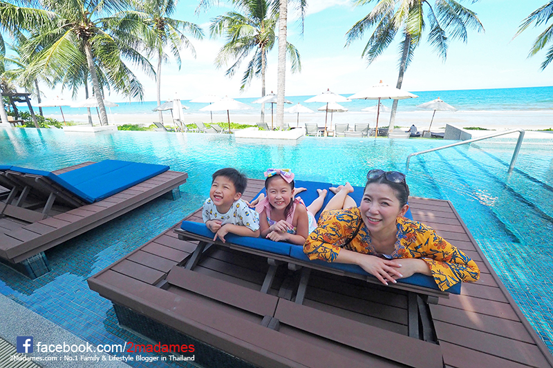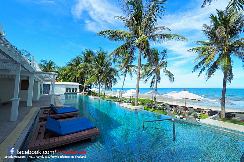 สระว่ายน้ำที่นี่สวยมาก ตั้งอยู่ริมทะเลเลย