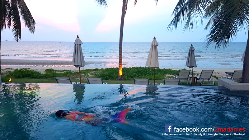 สระว่ายน้ำสวยขนาดนี้ น้องเกรซก็ทนไม่ไหวแล้ว พอแดดร่มหน่อย ก็เปลี่ยนชุดนางเงือกตัวเก่ง ลงเล่นน้ำทันที