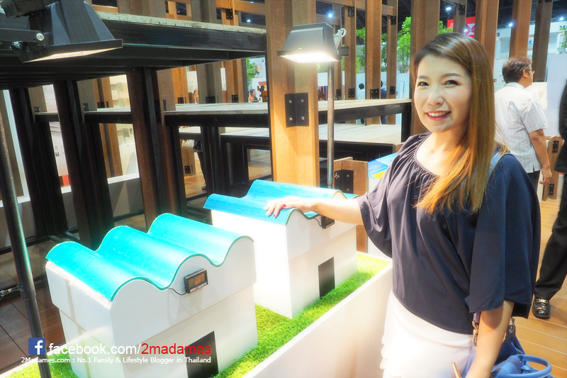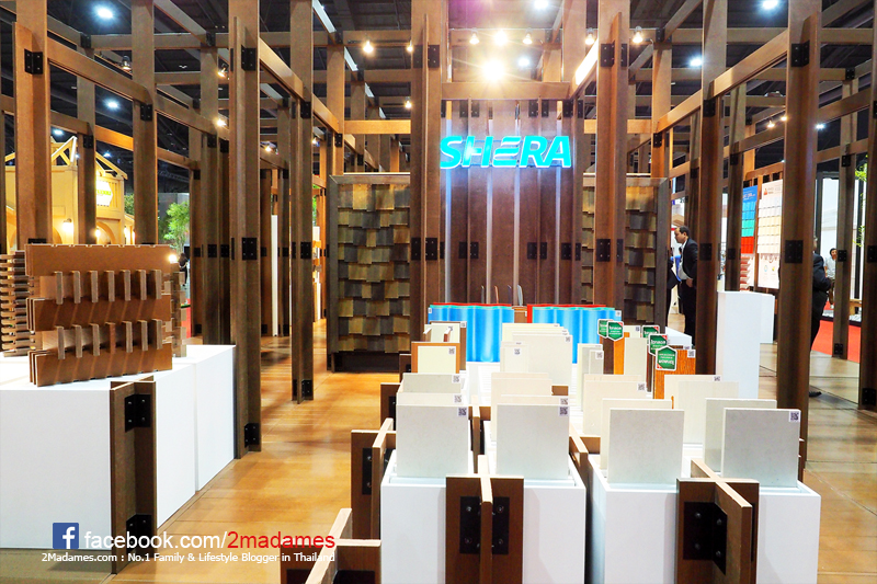 ติดกับบูทส่วนกลางเลยคือ บูทของ SHERA ที่เค้านำกระเบื้องหลังคาห้าห่วง กับไม้ฝามาออกบูท
