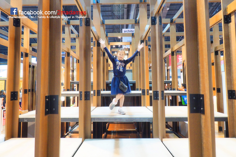 บูทเค้าทำเก๋ดี ด้านหลังออกแบบมาให้คนนั่งเล่นกันได้ ซึ่งที่น่าทึ่งคือ เค้าเอาไม้พื้นที่ทำมาจากไฟเบอร์ซีเมนต์มาทำเป็นโครงสร้างนะ ไม่เคยรู้เลยว่าไม้พื้นจะแข็งแรงพอที่จะรับน้ำหนักอะไรแบบนี้ได้ด้วย
