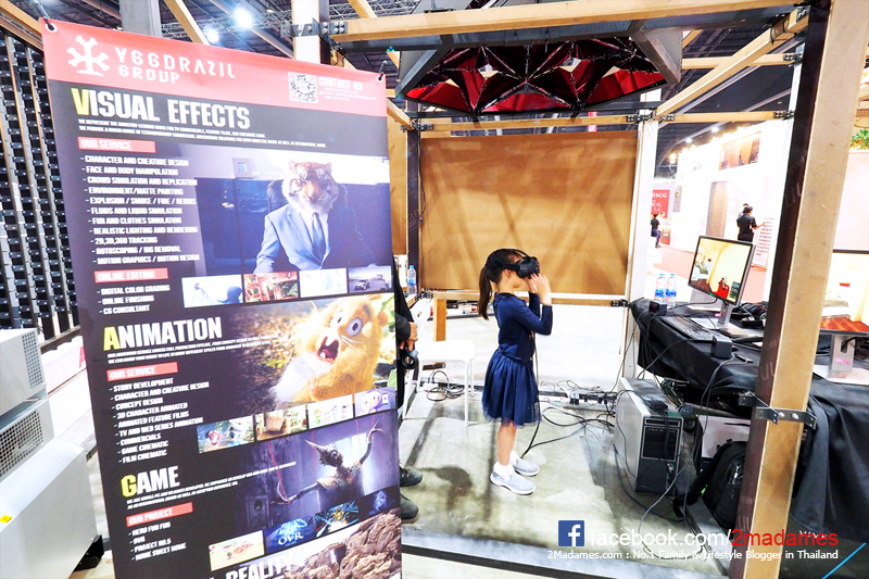 เข้ามาในงาน ตรงซุ้มกลางส่วนของผู้จัดงานก็มีของสนุกๆให้น้องเกรซเล่น คือ การใส่แว่น VR แล้วดูสภาพแวดล้อมเสมือนจริง หันหน้าไปทางไหนก็เหมือนอยู่ตรงนั้นจริงๆเลย