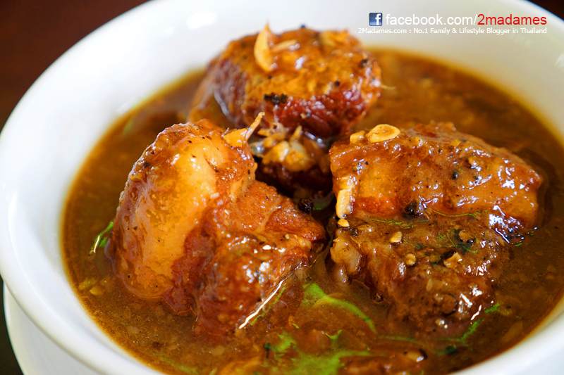ชมบรรยากาศร้านกันไปพอหอมปากหอมคอแล้ว เรามาเริ่มทานอาหารพร้อมๆกันดีกว่าครับ เมนูแรกเริ่มประเดิมด้วย “หมูฮ้อง” เมนูนี้ใครต่อใครหลายคนชอบมาก เพราะใช้เนื้อหมูสามชั้นอย่างดี คลุกเคล้าเครื่องปรุงส่วนผสมแล้วเคี่ยวไฟอ่อนๆจนเนื้อหมูนุ่มมากๆ รสชาติต้องบอกเลยว่าเข้มข้นทานกับข้าวสวยร้อนๆอร่อยอย่าบอกใครเลยล่ะ ราคา 300 บาท