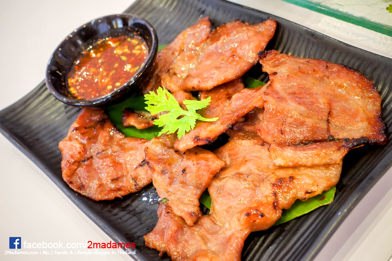 “คอหมูย่างจิ้มแจ่วไม่ติดมัน” ราคา 180 บาท เป็นเมนูที่ถูกใจคุณนายมาก เพราะเธอไม่ทานมัน แต่ถ้าใครชอบ “ติดมัน” ร้านพิเศษก็มีให้สั่งได้นะ แถมราคาถูกกว่าด้วย ติดมันจานละ 120 บาท รสชาติเข้มข้นเหมือนกัน