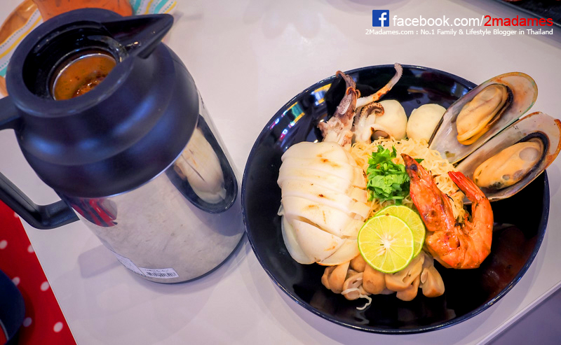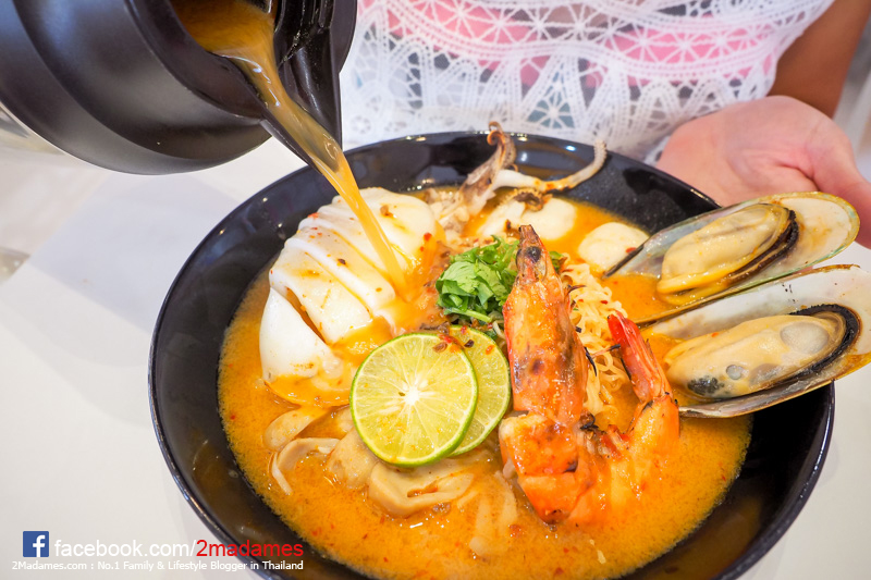 อีกหนึ่งไฮไลท์ที่เป็นเมนูเด็ดประจำร้าน ต้องยกให้เมนูนี้เลย “บะหมี่ต้มยำซีฟู้ดโคตรพิเศษ” ราคา 295 บาท คือเรียกได้ว่ายกทะเลมาเสิร์ฟเลยดีกว่า ปลาหมึกเนื้อแน่นหนึบ มาเต็มๆทั้งตัว กุ้งลายเสือย่างหอมๆ หอยแมลงภู่นิวซีแลนด์ และขาดไม่ได้ลูกชิ้นปลาภูเก็ตก็มีเสิร์ฟมาด้วย เวลาเสิร์ฟจะยกมาแบบแห้งๆพร้อมซุปต้มยำใส่กามาแบบนี้ ใครอยากทานน้ำท่วมๆหรือน้ำขลุกขลิกก็เติมได้ตามชอบเลยจ้า