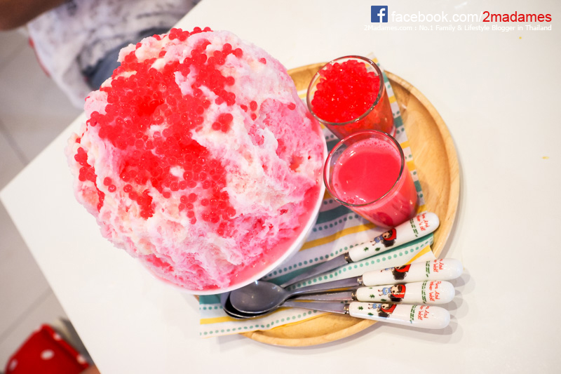 ส่วนพ่อแม่อย่างเราขออินเทรนด์กับ “บิงซูนมชมพู” ราคา 145 บาท หน้าตาดูดีมาก ส่วนรสชาติก็ไม่เลวเลย ด้านล่างมีขนมปังอยู่ด้วยนะ