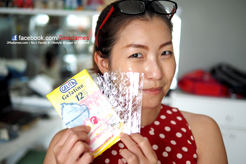 เสร็จขั้นตอนการทาเจลาตินเรียนร้อย หากิจกรรมอื่นทำรอจนกว่าเจลาตินจะแห้งนะคะ แห้งแล้วหน้าจะตึงมากๆ เมื่อแน่ใจว่าแห้งแล้วก็เริ่มปฏิบัติการลอกแผ่นเจลาตินออกเลย