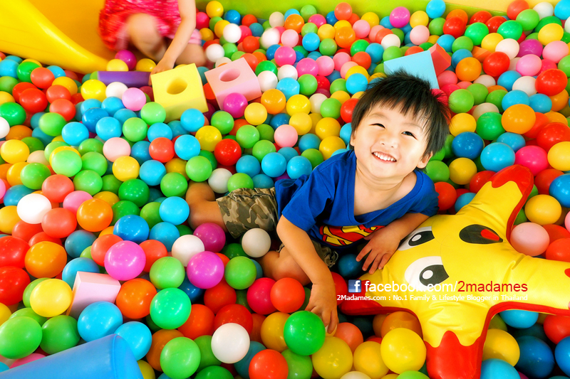 ทีเด็ดที่เป็นชื่นชอบสำหรับลูกค้าครอบครัวที่มีเด็กอย่างเรา คือเค้ามีบ้านบอลให้เด็กๆเล่นด้วย ขนาดใหญ่พอสมควรเลยหละ