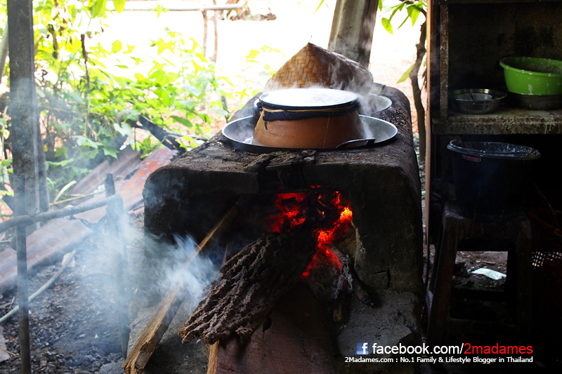 ใช้เตาฟืนแบบโบราณเลย อาหารออกมาหอมฟืนมากมาย