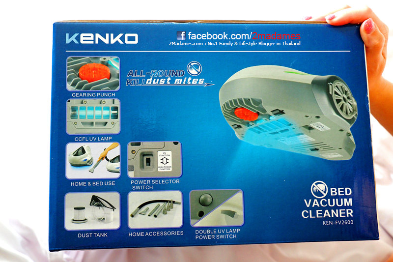 เริ่มรีวิวเครื่องดูดฝุ่นกันเลย เครื่องนี้มียี่ห้อว่า Kenko ไม่รู้อ่านออกเสียงว่าอะไรให้ถูกต้อง แอนเลยตั้งชื่อเรียกมันว่า “น้องโกะ” แทน เรียกง่ายดี ซึ่งดูจากกล่องของน้องโกะแล้ว ก็บอกได้เลยว่าระบบของน้องโกะเข้าใจง่ายๆ หลักๆก็คือ ตัวตีฝุ่นทำหน้าที่ขุดตีเจ้าไรฝุ่นออกมากจากที่นอน ตามด้วยการฉายแสง UV ฆ่าเชื้อโรคต่างๆ