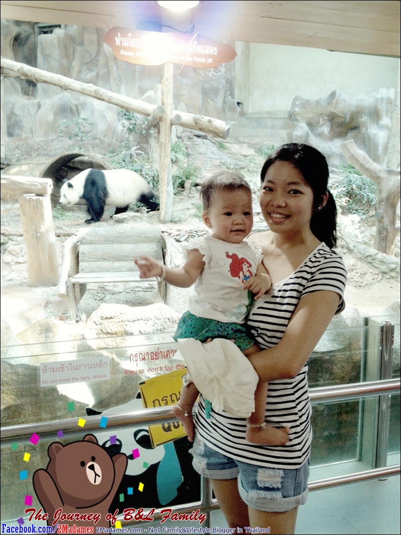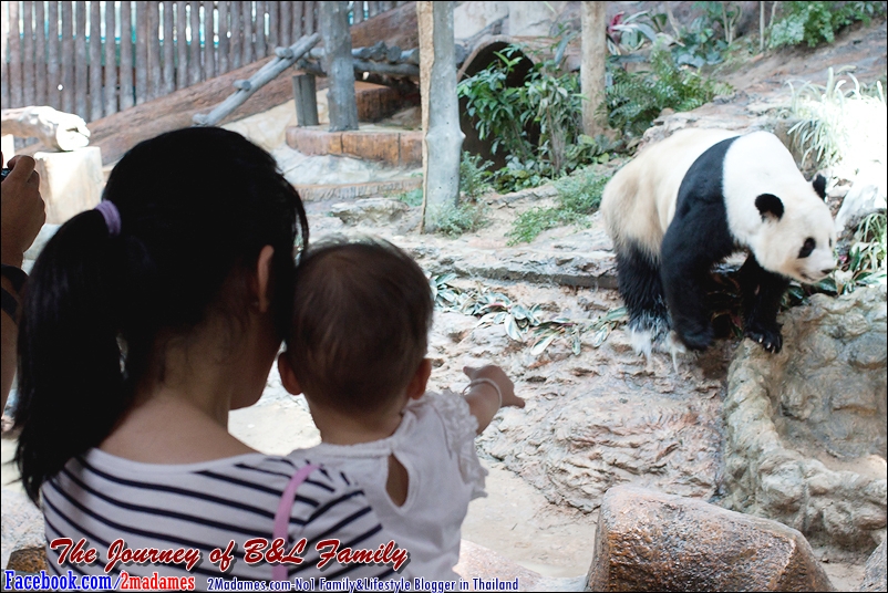 และแล้วก็มาแวะทักทาย ครอบครัวแพนด้า เบลล่าชอบมาก ไม่ยอมออกกันเลย เหลียวมอง ชี้ ทักทายใหญ่เลย