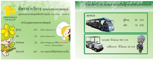 นอกจากนี้ เนื่องจากระยะทางภายในค่อนข้างไกล และไม่สามารถขับรถเข้าไปได้เอง จึงมีบริการถรางกับรถไฟรางเดียวไว้คอยบริการ สนนราคาตามนี้ครับ
