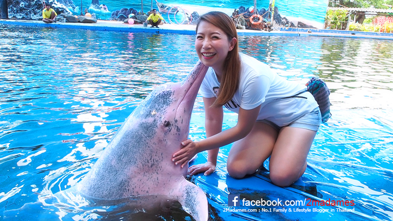 จบการแสดงก็จะมีให้ไปถ่ายภาพกับโลมาสีชมพูด้วย (มีค่าใช้จ่ายเพิ่มเติมนะ)