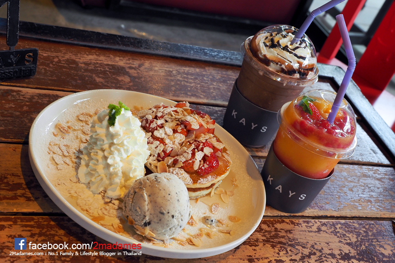 เหน็ดเหนื่อยกันมาทั้งวัน ต้องไม่พลาดที่จะมาจิบเครื่องดื่มคลายร้อนพร้อมทานขนมอร่อยๆกันที่ KAYS Espresso Bar เป็นร้านดังที่ใครๆก็แวะกัน เข้ามาในร้านคนเยอะมาก โต๊ะเต็มหมด ถ้าอยากนั่งห้องแอร์ก็รอคิวหน่อย แต่บริเวณอื่นๆทั้งโซนด้านหน้า ในสวนด้านหลังก็มีที่นั่งเยอะอยู่นะ