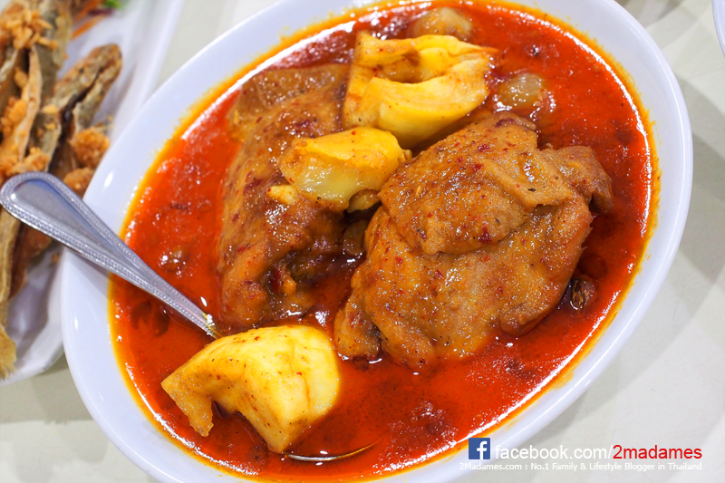มาเริ่มเมนูแรกกันเลยดีกว่า กับมัสมันไก่ใส่ทุเรียน ราคา 250 บาท แค่เห็นชื่อเมนูก็รีบสั่งมาลองแล้ว เรื่องรสชาตินี่เข้มข้นรสจัดจ้าน แกงได้เข้าเนื้อไก่จนนุ่มทานง่าย ไม่มีกลิ่นทุเรียนมากวนใจ เนื้อทุเรียนทานแล้วรู้สึกหนึบๆเนื้อแน่นรสสัมผัสตอนเคี้ยวมีความคล้ายมันฝรั่งอยู่นะแต่เนื้อหนึบแน่นกว่า เมนูนี้ให้เต็ม 10 เลย บรรยายไปก็น้ำลายไหลไป อยากกลับไปทานอีกเดี๋ยวนี้เลย