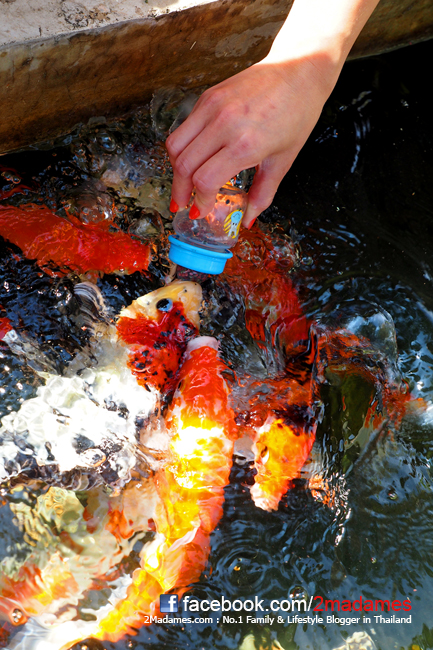 อิ่มกันแล้ว เดินออกมาให้อาหารปลาด้วยขวดนมด้านหน้าได้ด้วยนะครับ (เพิ่งรู้ว่าปลาคาร์ฟดูดขวดนมเป็นด้วย Amazing มาก)