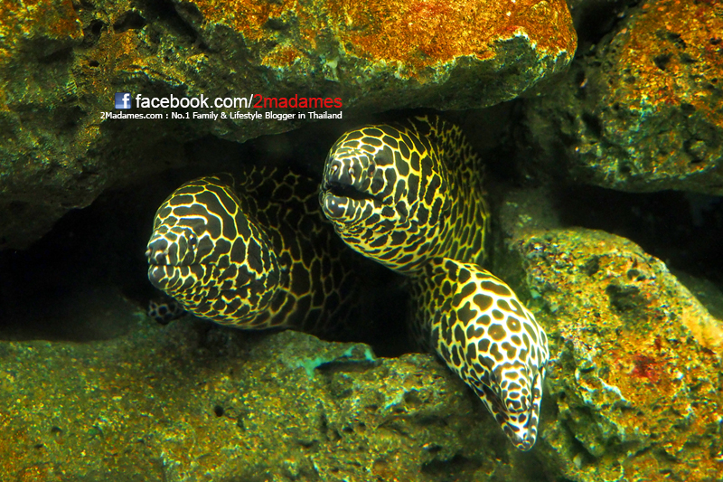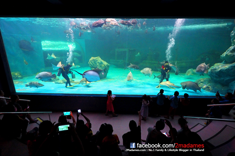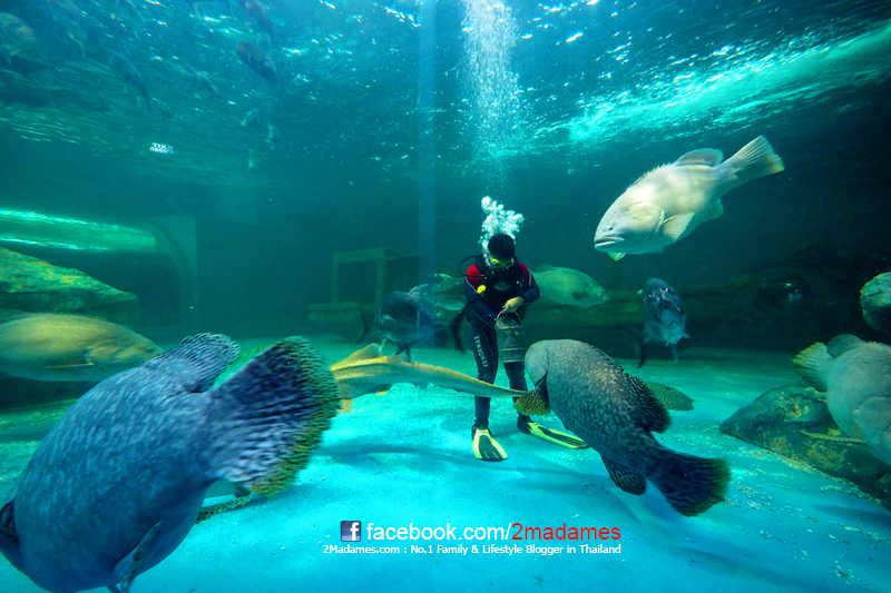 จะมีคนใส่ชุดดำน้ำลงไปให้อาหารปลาต่างๆกับมือเลย