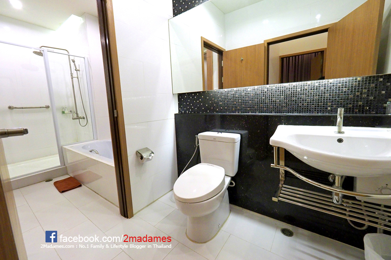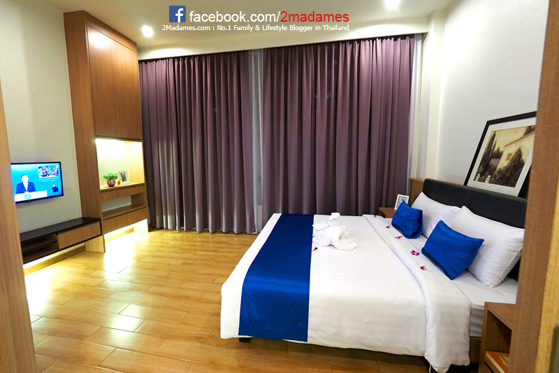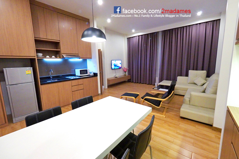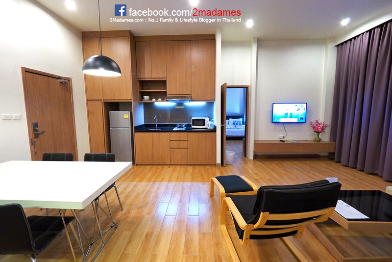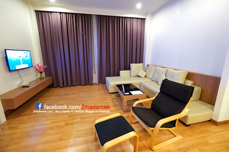 เราไปชมห้องแบบ Vanda Suite Room กันก่อน ห้องนี้พื้นที่ใหญ่มาก ขนาด 82 ตร.ม. มีห้องนั่งเล่นกว้างๆ มีครัวพร้อมอุปกรณ์ครบ ห้องนี้มี 1 ห้องนอน 1 ห้องน้ำ มีอ่างแช่ตัวและ Walk-in Closet ด้วย เก๋มากๆ ที่ชอบมากๆคือเพดานที่นี่สูงมาก ทำให้เรารู้สึกไม่อึดอัด แถมมาพร้อมราคาสบายกระเป๋าแค่คืนละ 2,650 บาทเอง (รวมอาหารเช้าด้วยจ้า)
