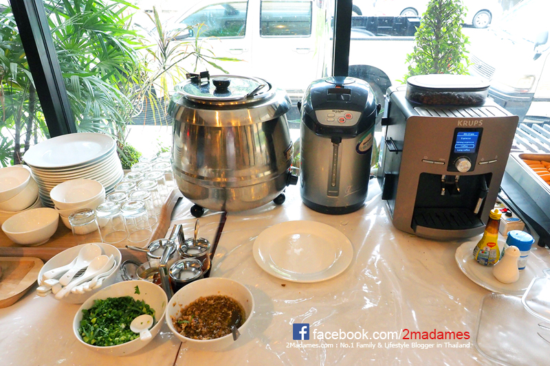ถัดมามีข้าวต้มรวมมิตรใส่ทั้งกุ้ง ปลา และปลาหมึก เครื่องเยอะมาก ข้าวต้มอร่อยรสชาติดีทีเดียวเชียวล่ะ เครื่องทำกาแฟสดก็มีจ้า