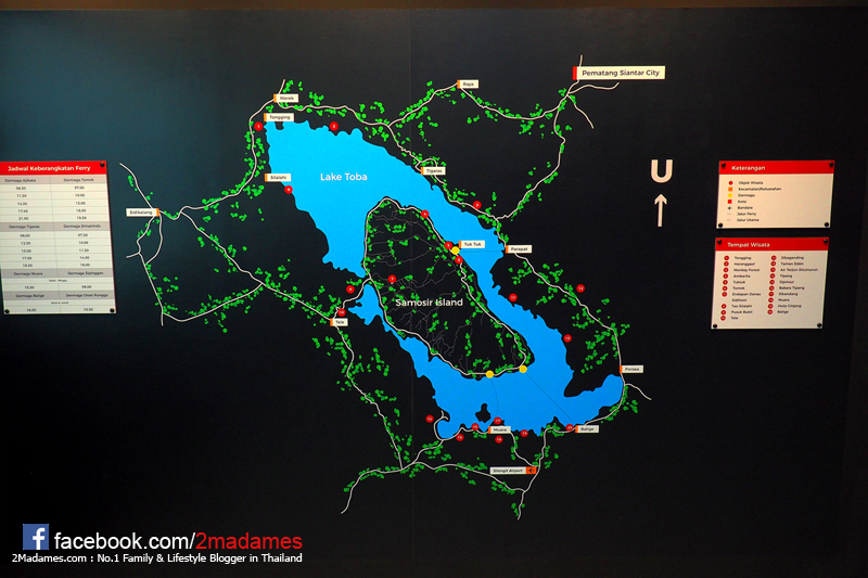 เค้าก็จะมีข้อมูลต่างๆ อธิบายเกี่ยวกับปล่องภูเขาไฟที่สงบลงแล้วหลักแสนปี และเมื่อฝนตกลงมาก็เกิดเป็นทะเลสาบขนาดใหญ่อย่าง Lake Toba ที่มีเกาะตรงกลางที่ชื่อว่า Samosir Island ซึ่งเกาะตรงกลางนี้ขนาดใหญ่กว่าเกาะสิงคโปร์อีกนะ โอ้โห ลองคิดดูว่าป่องภูเขาไฟที่เป็นทะเลสาบโทบะจะมีขนาดใหญ่โตแค่ไหน