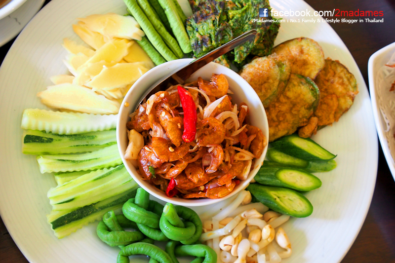 น้ำพริกกุ้งเสียบ… ขอบอกว่ารสชาติ จัดจ้านมากๆเลยครับ เสิร์ฟมาพร้อมผักหลากหลาย เลือกผักกันตามใจชอบเลยนะครับ ลูกสาวผมเหมาถั่วฝักยาวดิบหมดจานเลย ของโปรดเธอเลยล่ะ