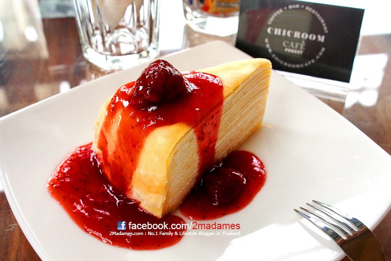 ทานคู่กับของหวานอย่าง… สตรอเบอร์รี่เครปเค้ก หวานนิดๆ อมเปรี้ยวจากน้ำซอสสตรอเบอร์รี่หน่อยๆ