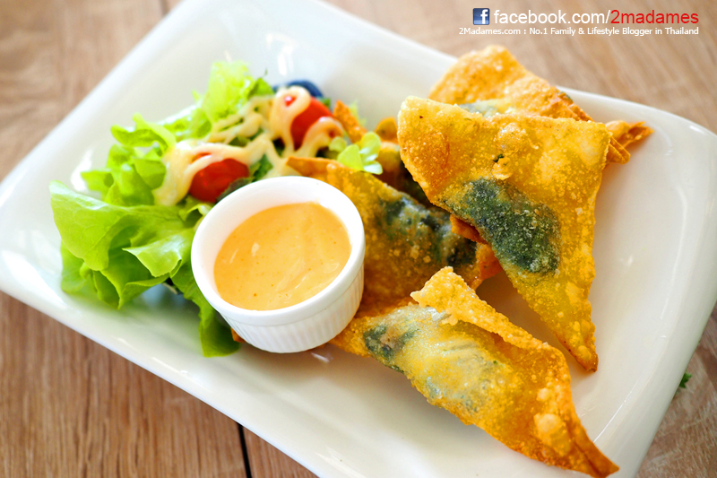 อุ่นเครื่องด้วยเกี๊ยวห่อชีสและผักโขม เมนูนี้เด็กๆชอบ เป็นวิธีการสอนเด็กๆทานผักได้อย่างแยบยลเลย ราคา 85 บาท เสิร์ฟเกี๊ยวมาแค่ 5 ตัว ราคาสูงเหมือนกันเนอะ