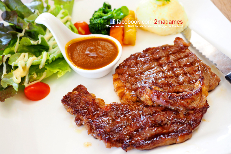 เนื้อริบอายพรีเมี่ยมสเต็ก ราคา 399 บาท แอบเหนียวไปหน่อย และชิ้นเนื้อบางมาก ถ้าปรับเป็นเนื้อหนาแต่ชิ้นเล็กกว่าจะดูดีกว่านี้เยอะ ส่วนตัวว่าราคาระดับนี้น่าจะอร่อยกว่านี้ครับ