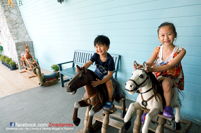 อิ่มแล้ว แวะเข้าห้องน้ำก่อนจะเข้าฟาร์มกันต่อ เจอม้าโยก เด็กๆขึ้นไปขี่กันสนุกเลยครับ