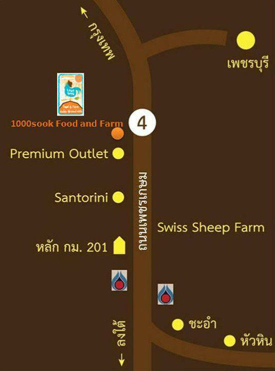 แผนที่การเดินทางมายัง พันธ์สุข ฟู้ด แอนด์ ฟาร์ม ชะอำ 1000Sook Food and Farm