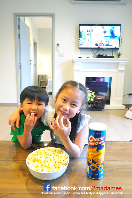 บ่ายๆ คุณนายแอนใช้ไมโครเวฟทำ Popcorn ให้ทุกคนทานกัน ถือเป็นข้อดีในการเช่าคอนโดที่มีอุปกรณ์ครัว