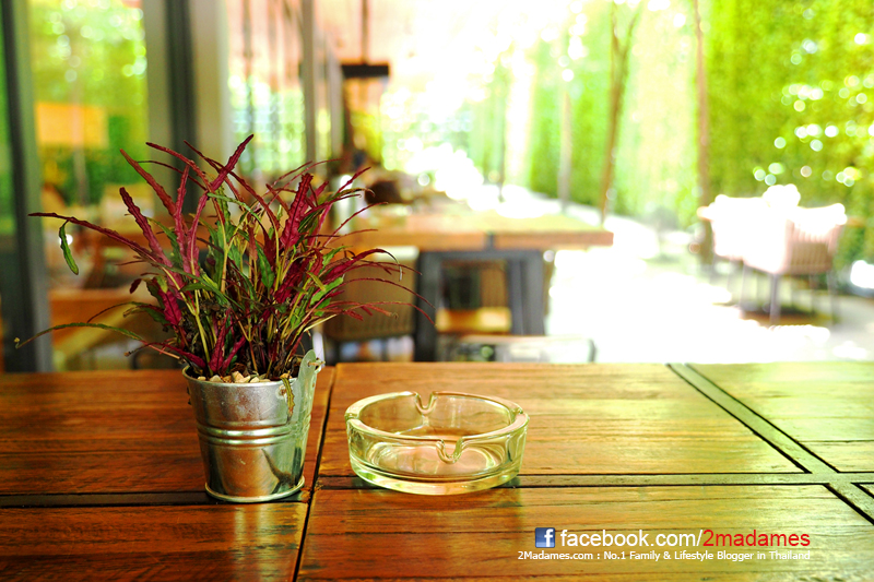 บรรยากาศโดยรวมค่อนข้างจะสบายๆ มีสีเขียวจากต้นไม้บนกำแพงด้านนอก มีเสียงเพลงเปิดเบาๆ ชิดล์มาก ที่ชอบอีกอย่างคือนั่งๆไปแสงไฟจะเดี๋ยวหรี่เดี๋ยวสว่าง อารมณ์เหมือนนั่งชิลล์ด้านนอกแล้วเดี๋ยวแดดออกเดี๋ยวแดดร่ม