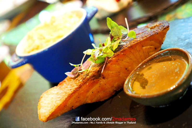 Atlantic Salmon ราคา 680++ สเต๊กปลาแซลมอนชิ้นโตย่างมาสุกกำลังดีมากๆเนื้อฉ่ำๆไม่แห้งเกินไปทานกับ สำหรับซอสที่ทานก็เลือกได้หลายชนิดแต่วันนี้เลือกทานซอส Butter Lemon ซึ่งผมคิดว่าเข้ากับกับเมนูปลามากที่สุดแล้ว เสริ์ฟมาพร้อม Side Dish ที่มีให้เลือกได้ถึง 6 อย่าง ละลานตาเลย แต่เลือกได้อย่างเดียวนะ วันนี้อยากกินมันบดเลยจัดมันบดหวานๆมาทาน
