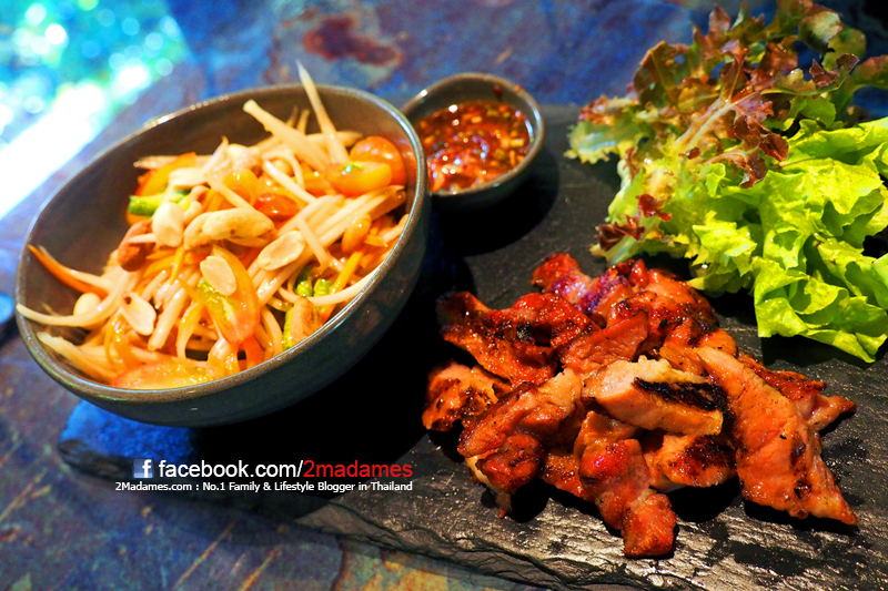 ส้มตำหมูย่าง ราคา 280++ อาหารพื้นบ้านที่คุ้นเคยกันดีอย่างส้มตำแต่รสชาติออกจะจืดไปหน่อยสำหรับคนไทย เคียงข้างมาพร้อมสันคอหมูย่างที่หมักกับเครื่องเทศที่คลุกเคล้ากันมาอย่างดีหมูนิ่มมากๆ จะบอกว่าไม่ต้องจิ้มน้ำจิ้มแจ่วยังอร่อยเลย