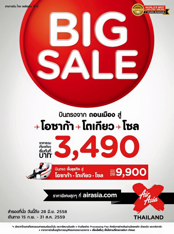 แถมโปรใหม่ล่าสุดจาก AirAsia X ไป-กลับ โตเกียว, โอซาก้า, โซล เริ่มต้นเที่ยวละ 3,490 บาท ชั้นธุรกิจ 9,900 บาท