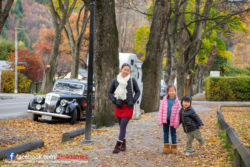 ในที่สุดก็ถึง Arrowtown แล้ว มีรถเก่าสวยๆจอดให้ชมกันด้วย ใบไม้สีแดงๆหล่นเต็มพื้นเลยครับ