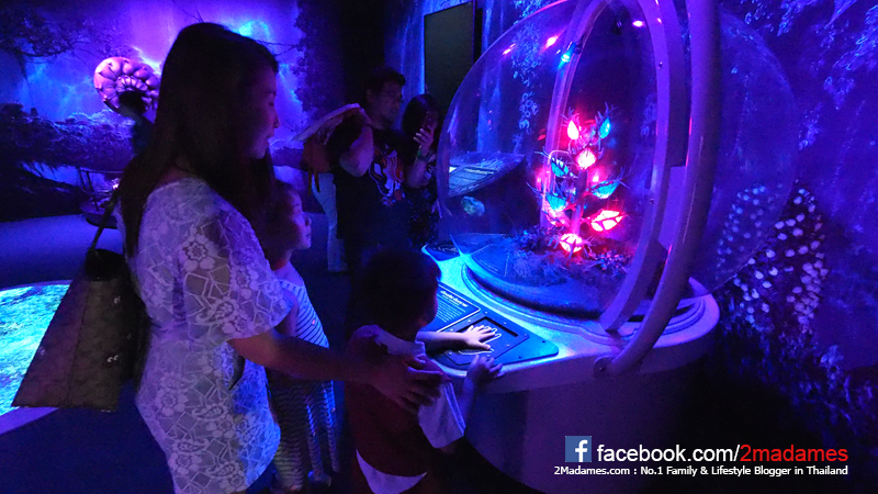 มีทั้งทดลองดมกลิ่นของดอกไม้ และมีช่องให้ลองล้วงมือเข้าไปสัมผัสกับสัตว์บนดาวด้วยนะ