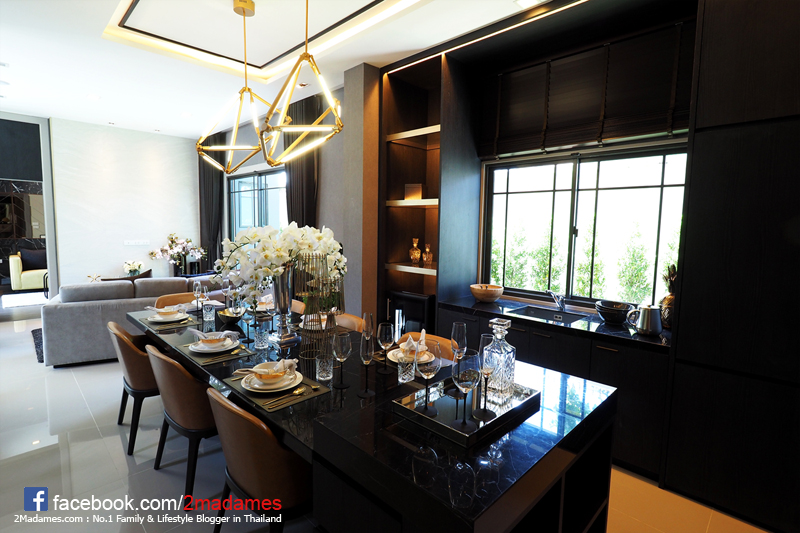 ที่จริงโซนนี้จะกั้นเป็นห้องนอนชั้นล่างก็ได้ (ห้องนอนที่5) แต่บ้านตัวอย่างทำเป็นพื้นที่วางโต๊ะทานอาหารระดับ 7 ที่นั่งเลย
