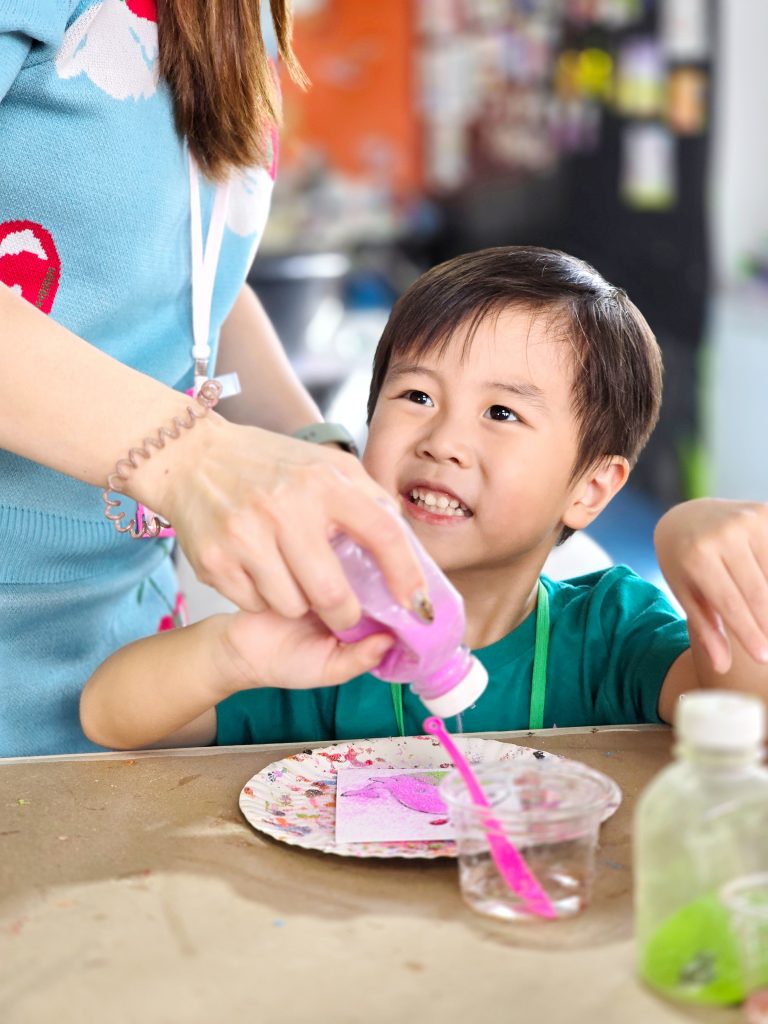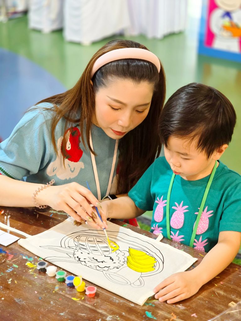 คุณแม่คุณลูก มาช่วยกันระบายผ้ากันเปื้อนกัน